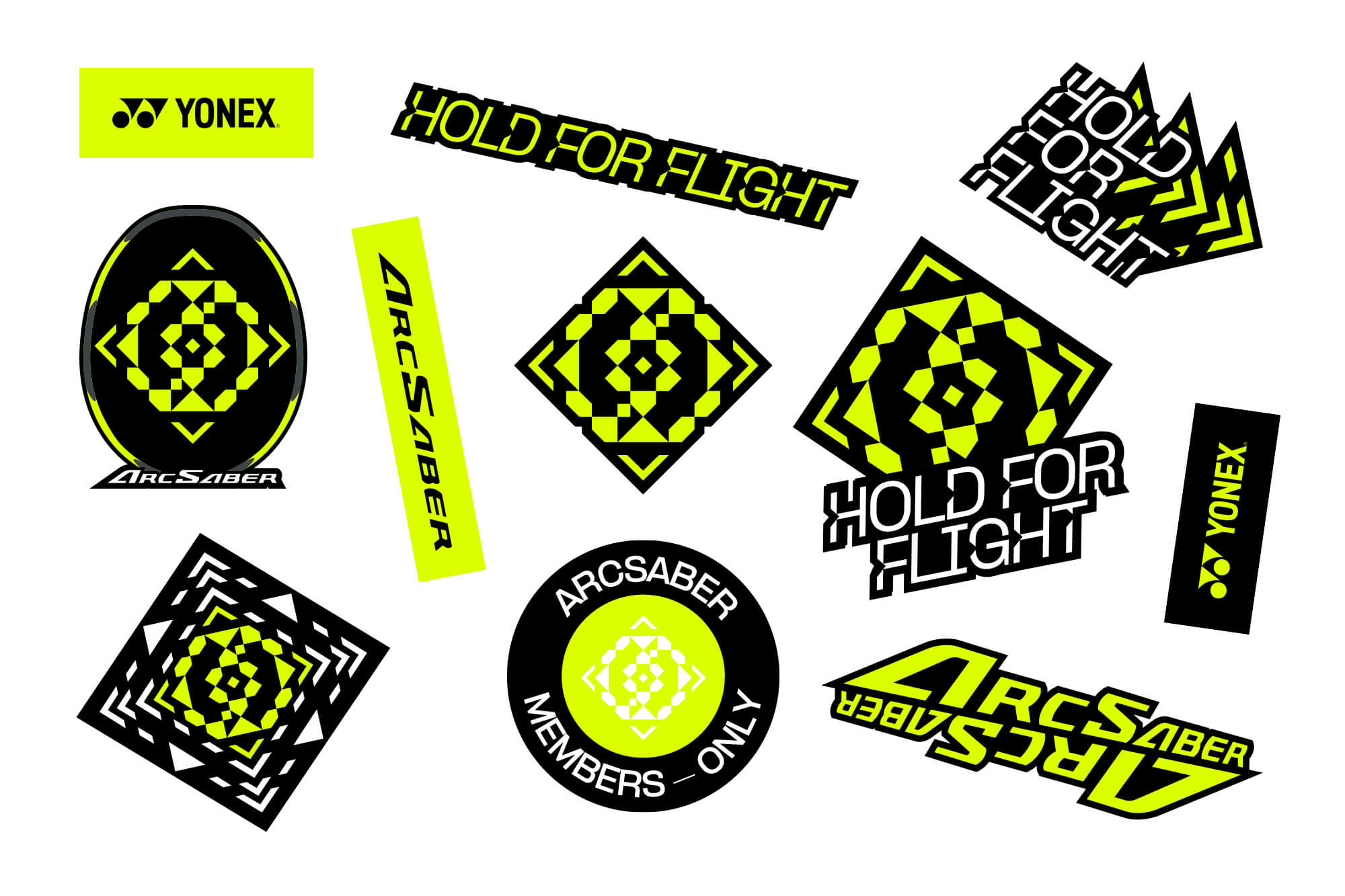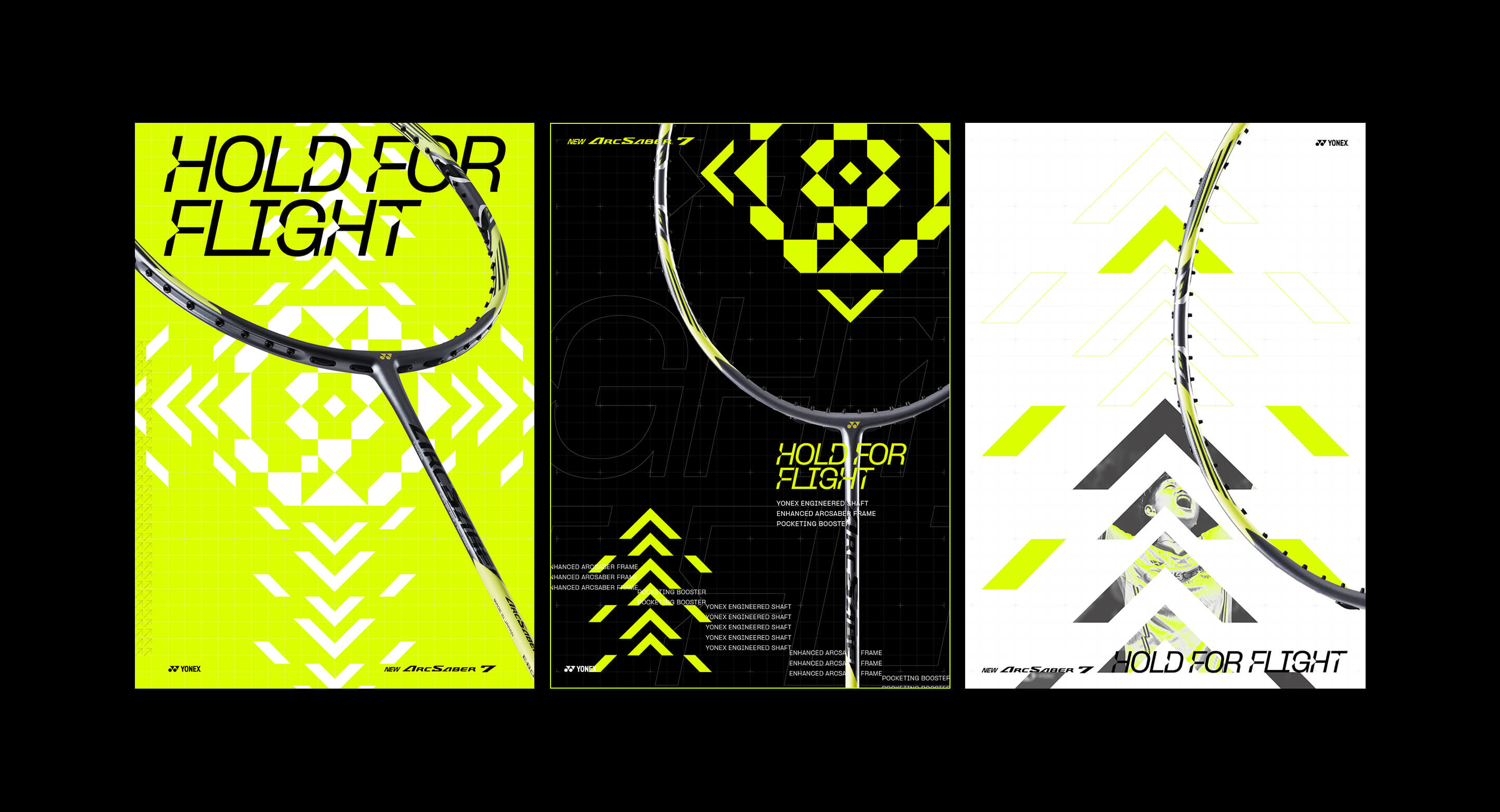 We created a new sub-identity for this new racquet, promising supreme control of the shuttle’s flight trajectory. ARCSABER 7 features an energetic colour palette twinned with geometric symbols, showing its powerful flight technology.