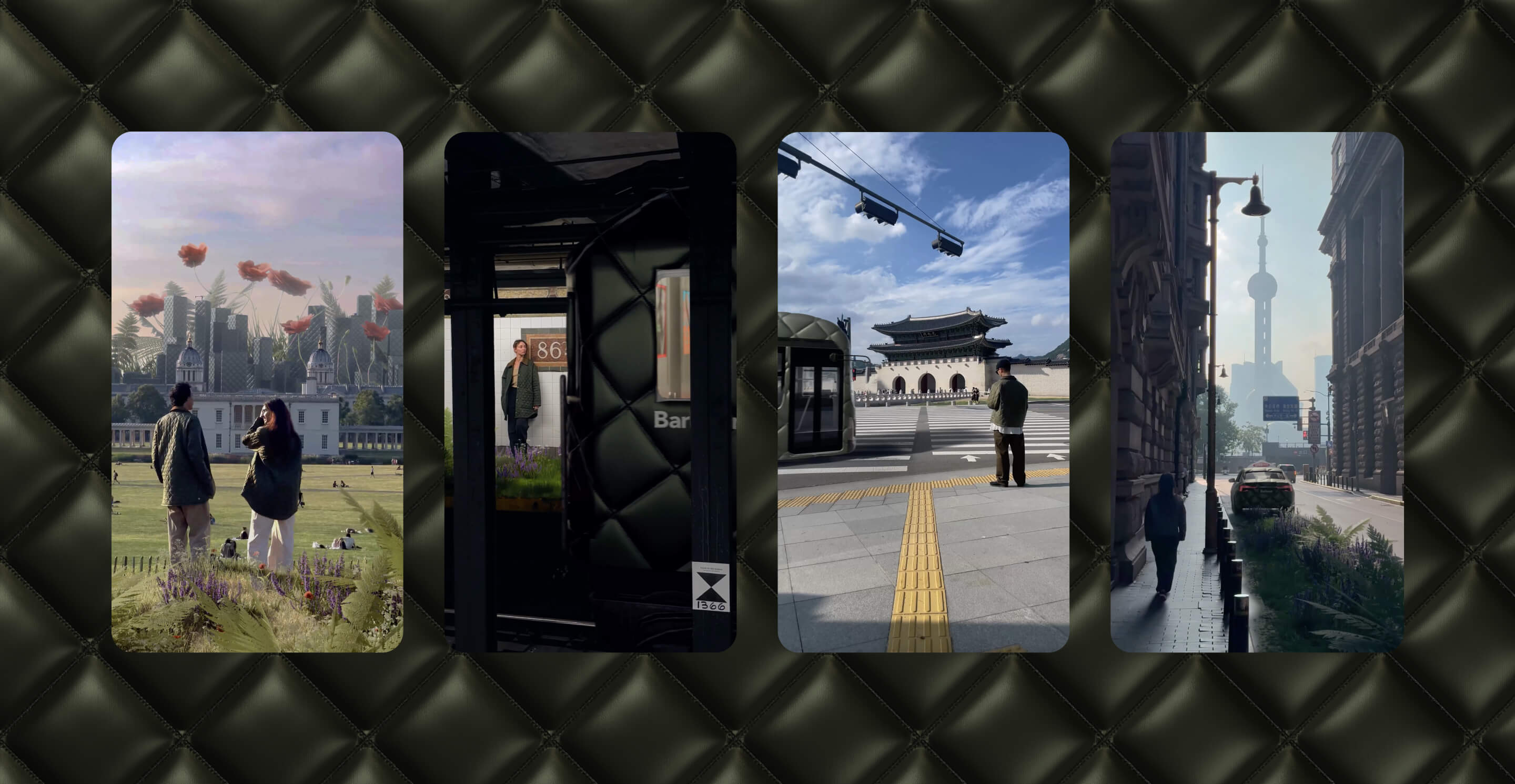 Putting a spin on fake out-of-home advertising, we created a series of four videos, shot in London, New York, Shanghai, and Seoul, in which iconic landmarks in each city were enveloped in Barbour’s signature quilt and ‘taken over’ by flora from the British countryside.