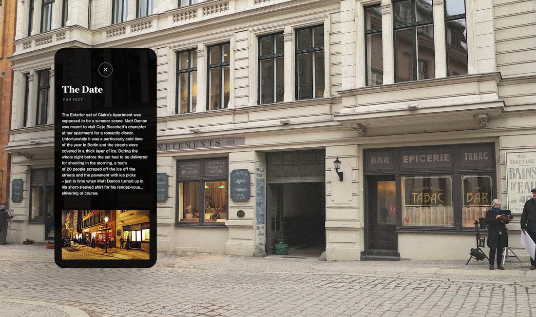 We launched a web app encouraging people to explore 5 iconic Berlin film locations and discover all about the artisans of film through AR and VR content.