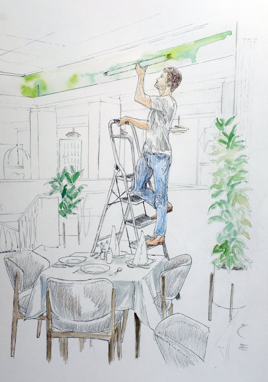 For the visual direction, we merged the worlds of craftsmanship and luxury. This was done by integrating handwritten notes (mimicking directors notes) as graphic elements, designing a paper-feel map for people to navigate Berlin, and commissioning hand-drawn illustrations from French artist Pascal Pillard to represent the different films in our AR/VR world.