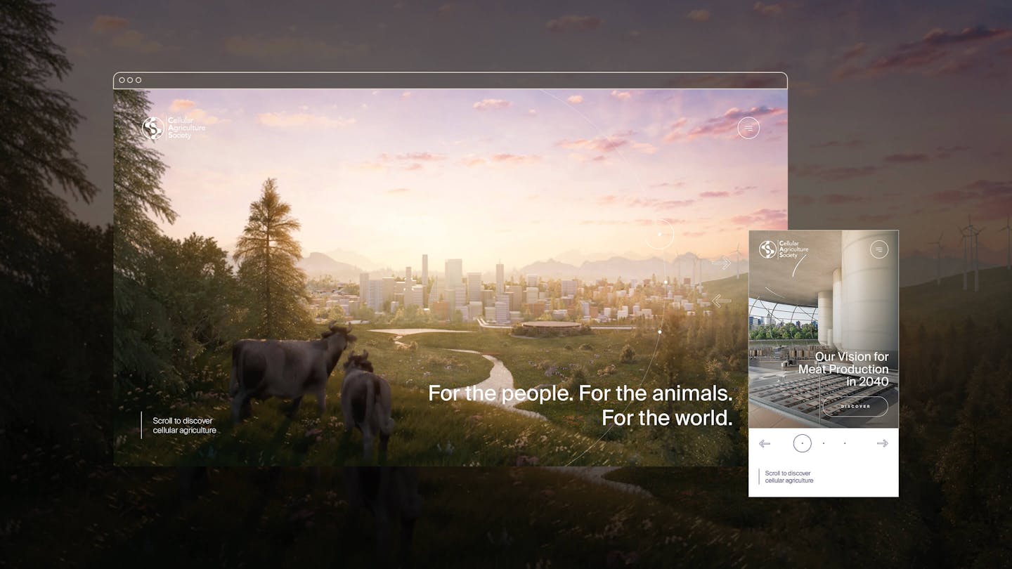 Cellular agriculture has the potential to solve a lot of the world’s biggest problems. From the environmental pressures created by factory farming to the health risks of current food mass production, cellular agriculture can move the world forward without the need for mass behaviour change. Without much knowledge on the subject however, some people feel sceptical about the idea. It can seem too good to be true. Our challenge was to help people imagine what a future with cellular agriculture could look like and help them understand the science that makes it possible. The website had to match the level of innovation and craft of the industry it represents, while remaining simple, accessible and optimistic.