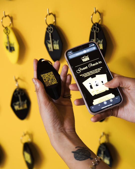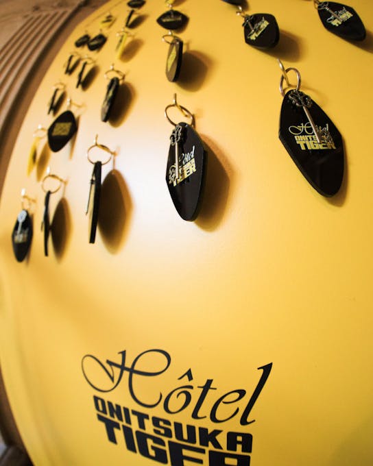 Thinking of the activity as a piece of brand theatre, we built a creative and design system that used every little opportunity to make the spirit of Hôtel Onitsuka Tiger’s guests felt. Visitors could find (and take home) hotel notepads with scribbles left behind by the resident artists. Snoop around lockers where residents kept their Onitsuka Tiger outfits. “Borrow” room keys that provide information and stories about the residents.