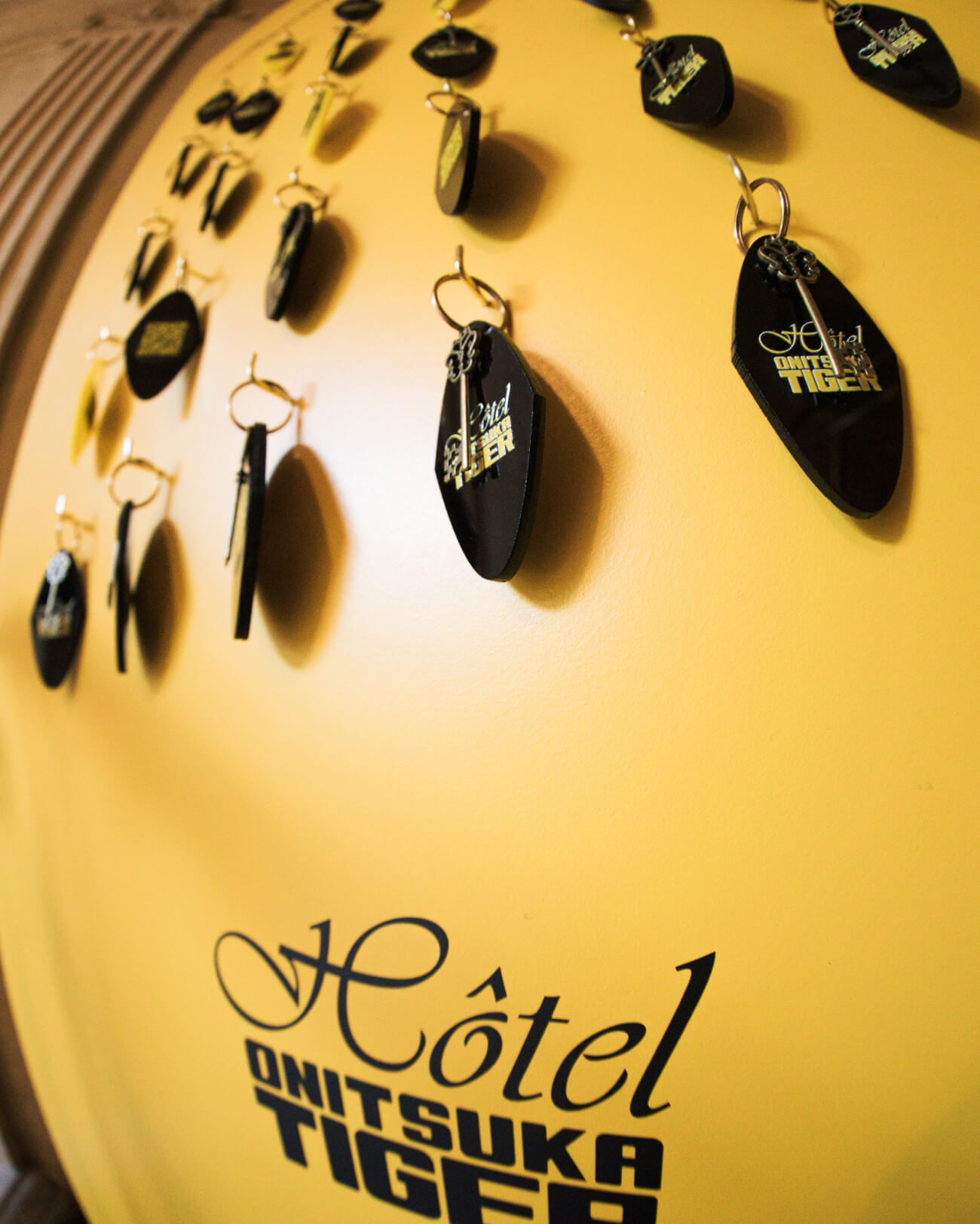 While exploring the Hôtel, visitors would also discover the past and present of Onitsuka Tiger. The hallway and atrium were converted into an exhibition celebrating the brand’s most iconic products, while the main room showcased the latest collection.