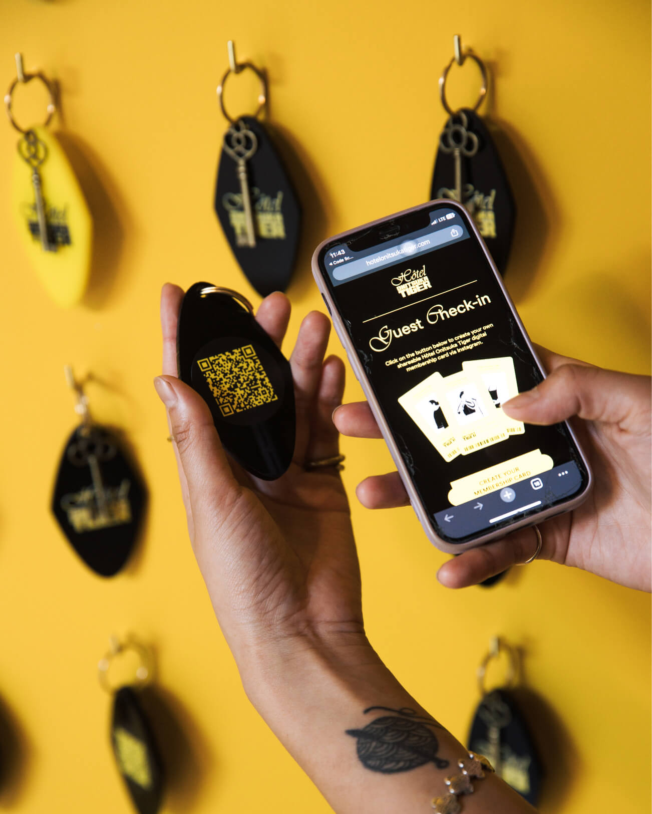 Thinking of the activity as a piece of brand theatre, we built a creative and design system that used every little opportunity to make the spirit of Hôtel Onitsuka Tiger’s guests felt. Visitors could find (and take home) hotel notepads with scribbles left behind by the resident artists. Snoop around lockers where residents kept their Onitsuka Tiger outfits. “Borrow” room keys that provide information and stories about the residents.