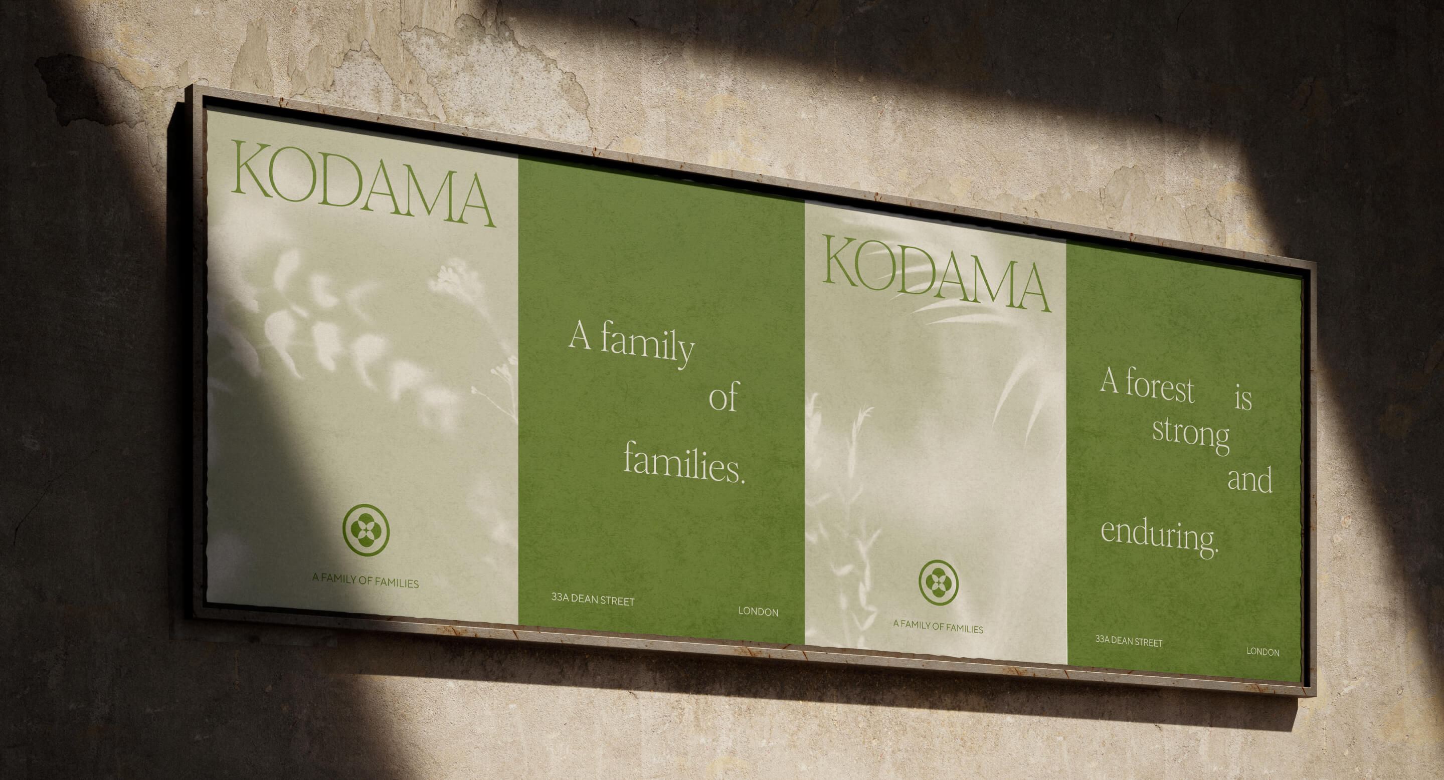 Throughout the Kodama brand, we felt it was integral to bring in the organic qualities of the forest, its imperfections, its permanence, and its ever-evolving growth. The brand leans into these principles through typography and composition.