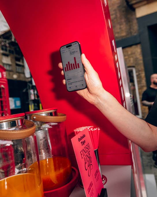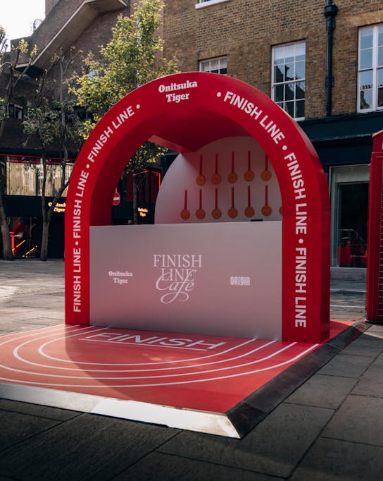 The idea: the Finish Line Café. A pop-up café in the shape of a marathon finish arch that rewards visitors who show proof of 10k steps with a special drink by Origin Coffee and a chocolate medal.