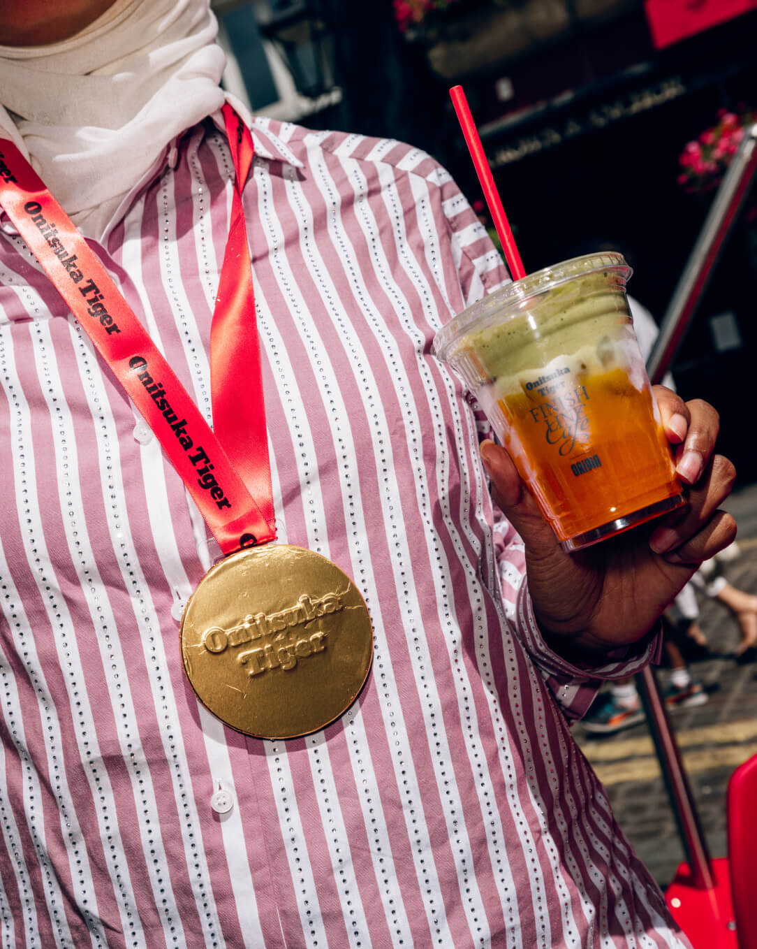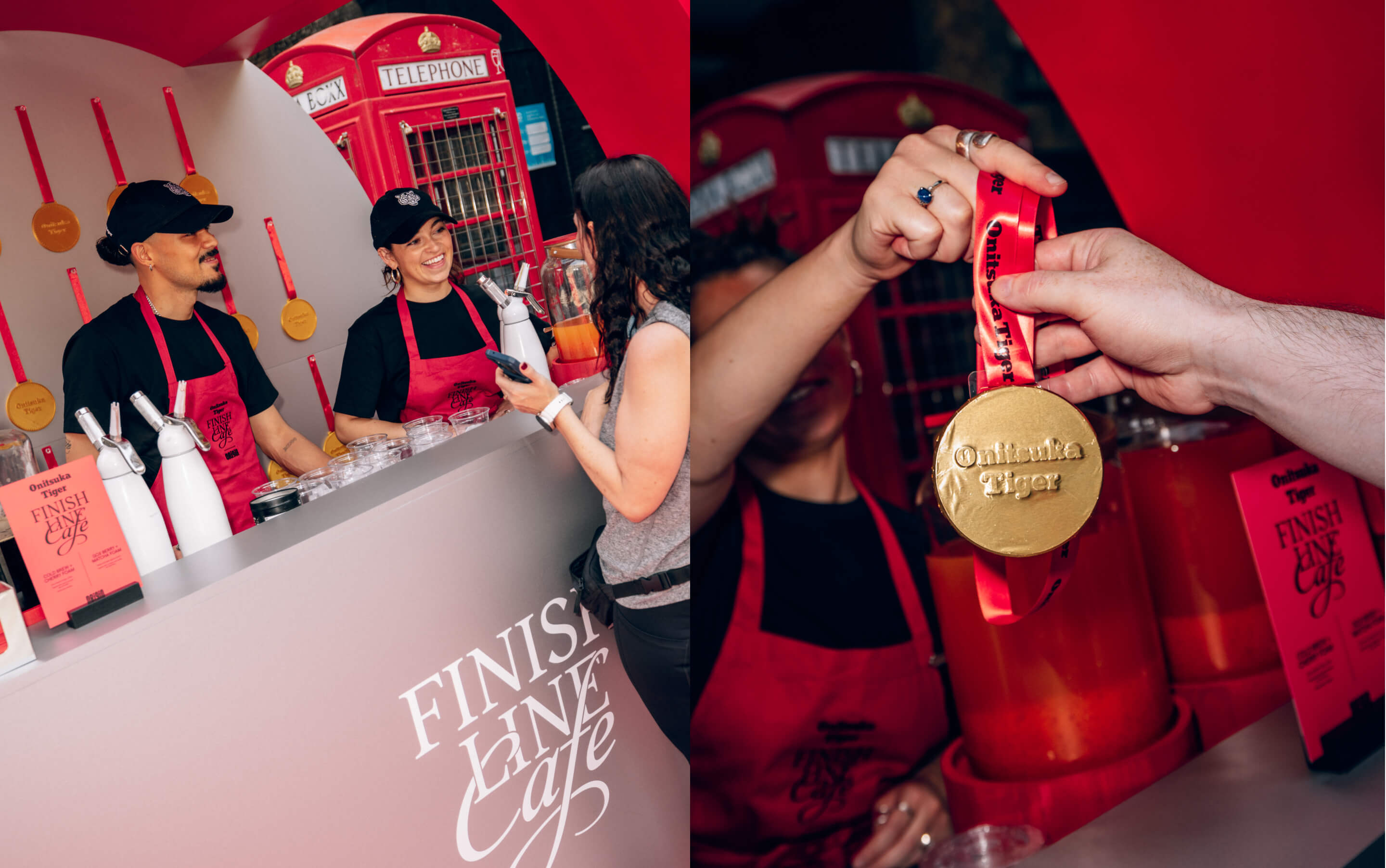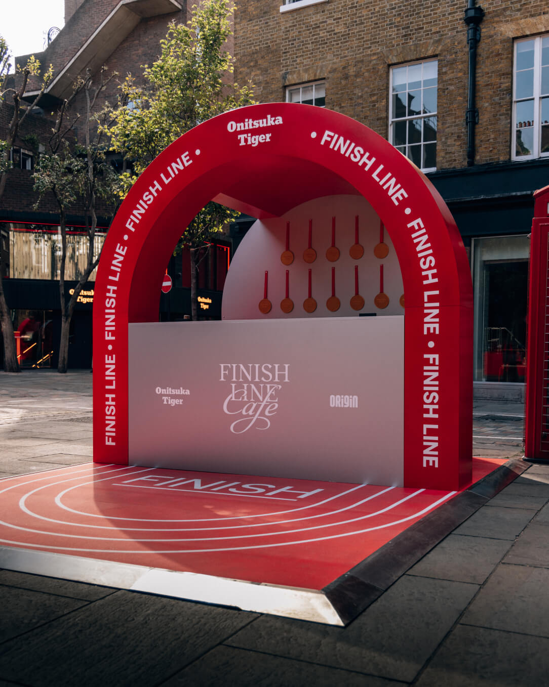The idea: the Finish Line Café. A pop-up café in the shape of a marathon finish arch that rewards visitors who show proof of 10k steps with a special drink by Origin Coffee and a chocolate medal.