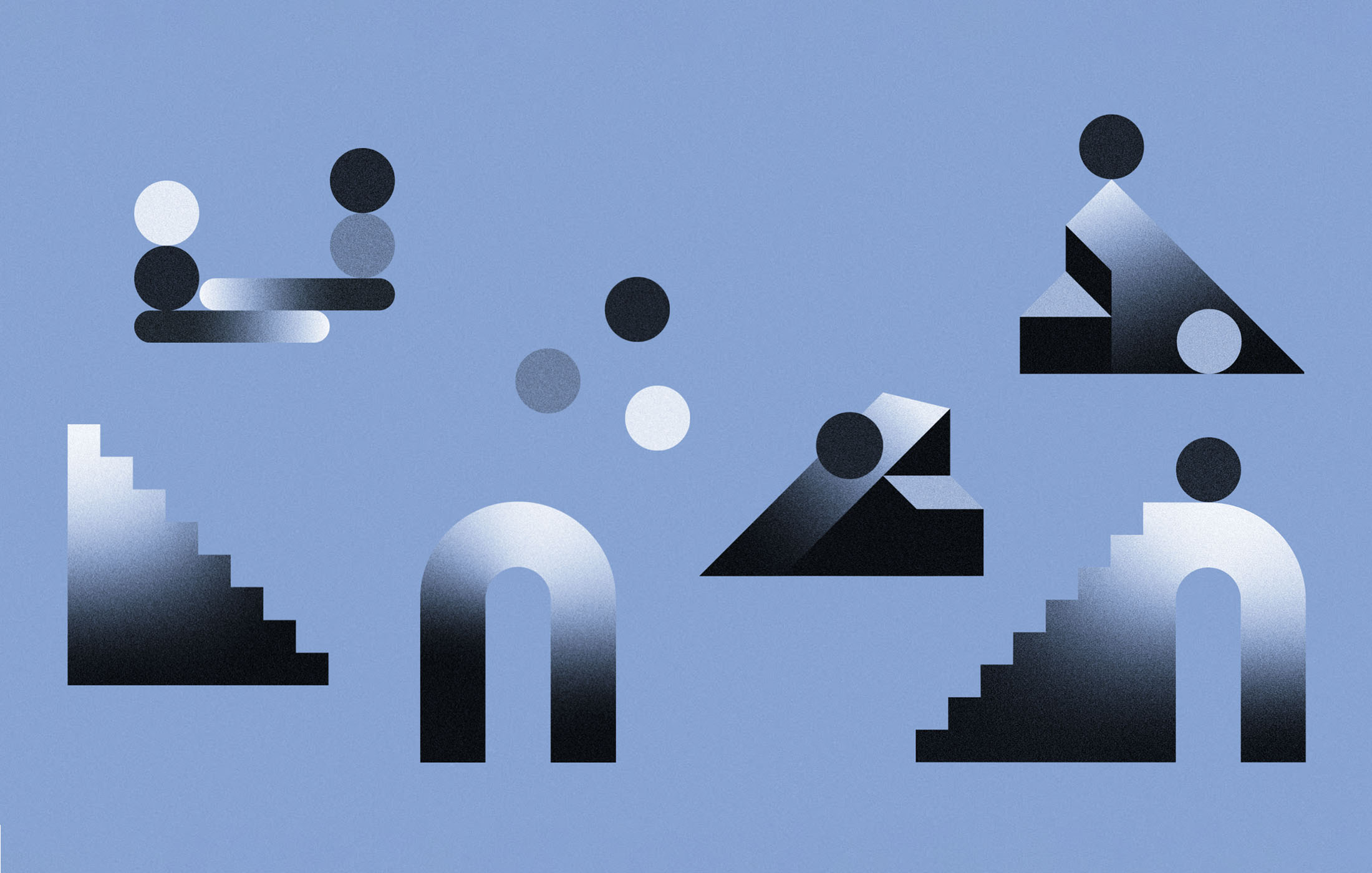 Part of the branding system, we created a series of illustrations that embody Presight Partners’s values and give the brand a striking personality. To represent the meta concept of "fund-of-funds", we took inspiration from the symbolism of Esher and metaphysical Dalì paintings. Each illustration is a composed scene made of symbolic elements and objects representing certain aspects of the business, creating a surreal and metaphysical environment.