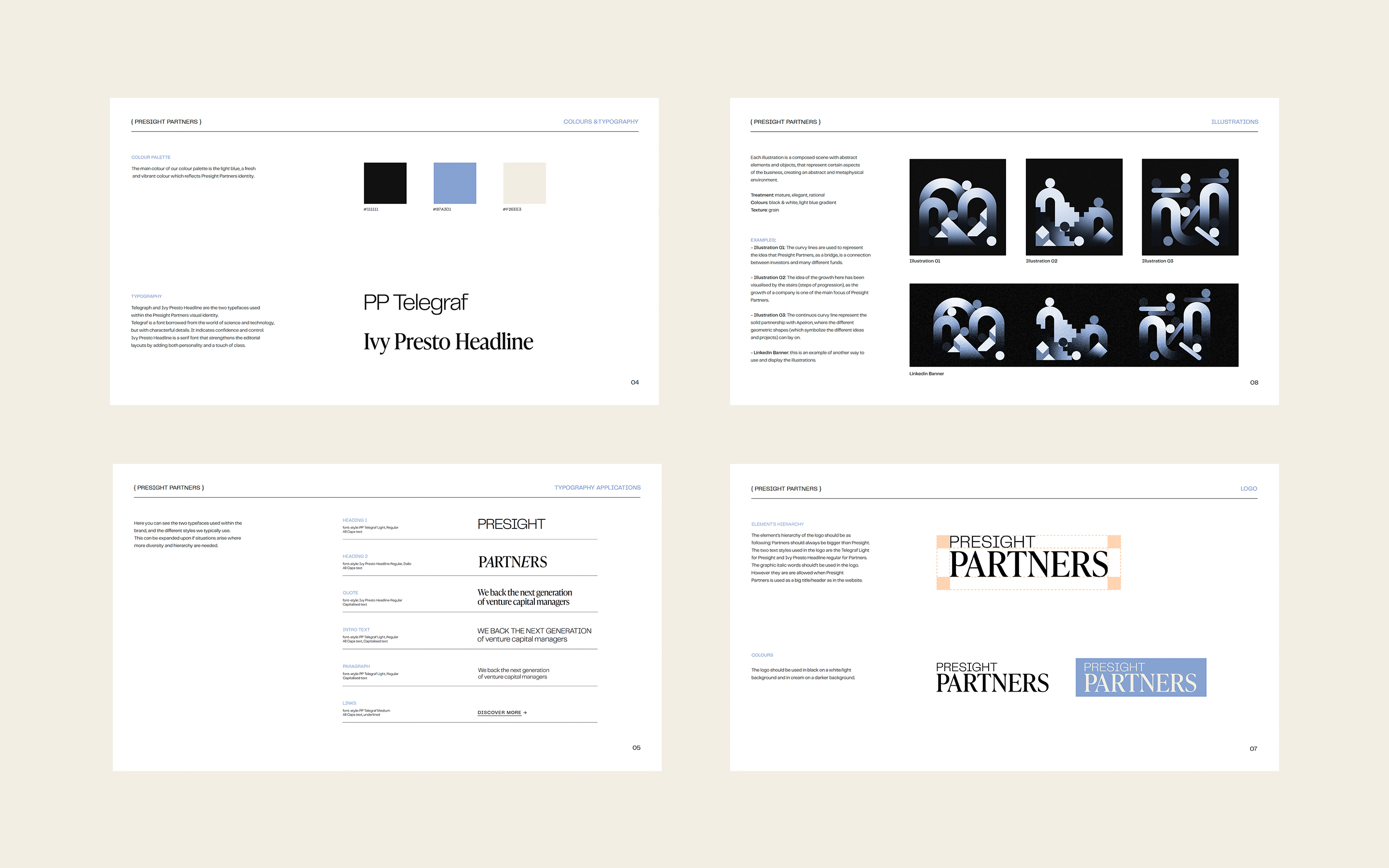 The brand’s visual direction is rooted in the solid foundations of editorial design, reinterpreted in a more contemporary way to reflect Presight Partners’ fresh approach to fund-of-funds. The website is typography-led with a combination of serif and sans-serif fonts. We were looking for a very editorial look inspired by newspaper layouts.
