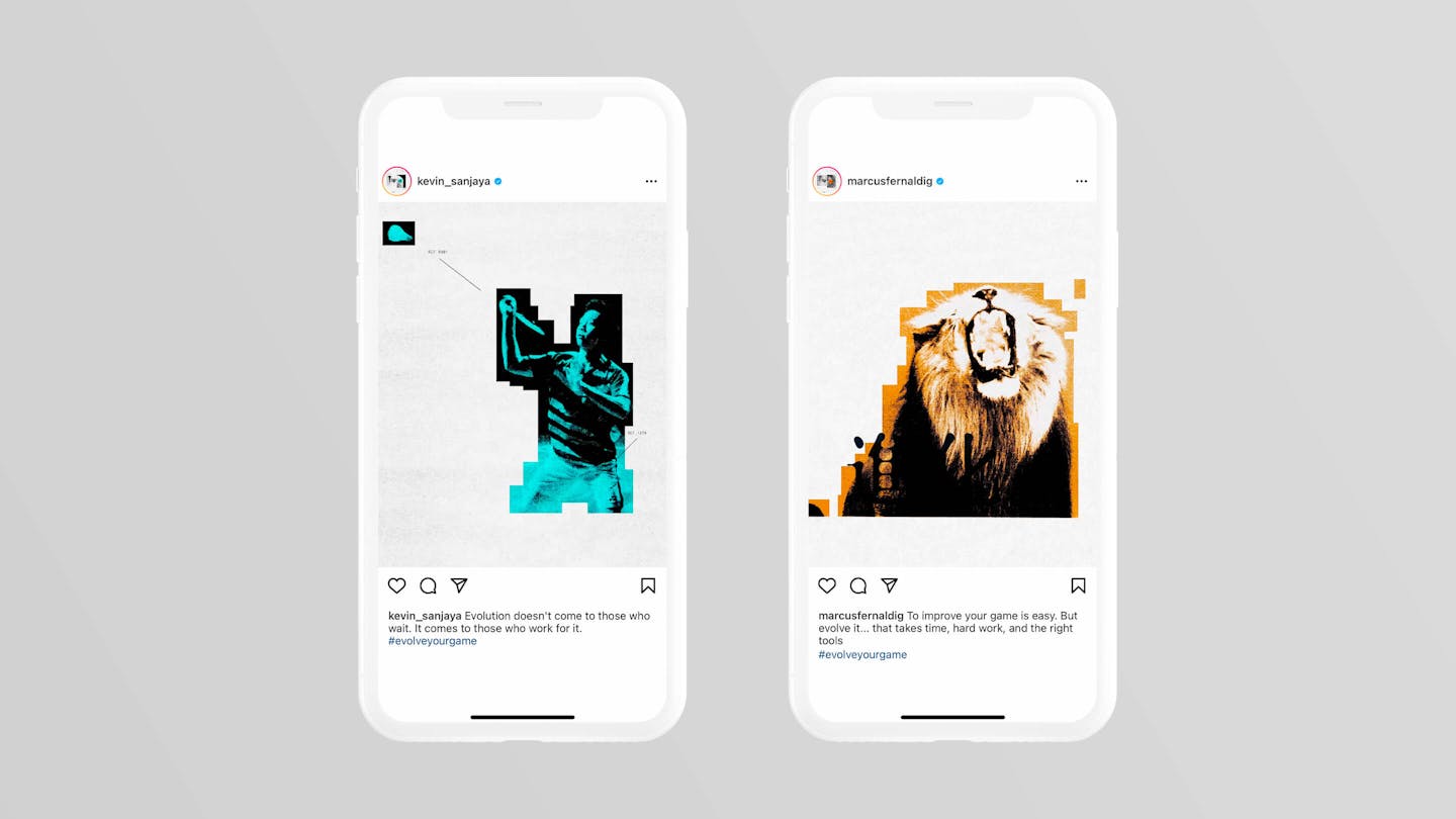 Enigmatic animalistic imagery teased the arrival of the racquets. When the day came to finally release the products into the world, Kevin and Marcus changed their Instagram profile pictures to half-human half-animal representations of their evolutionary energies.